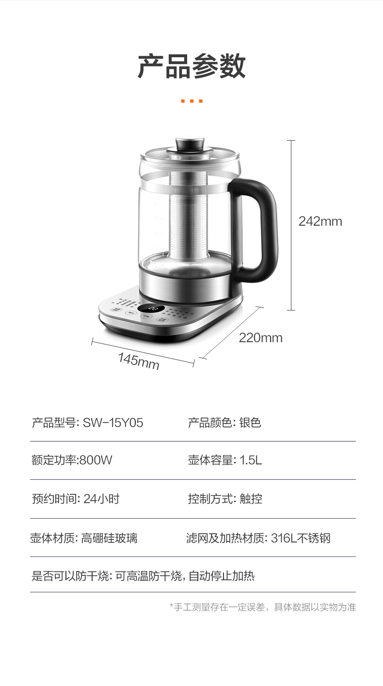 材質(zhì): 高硼硅壺身