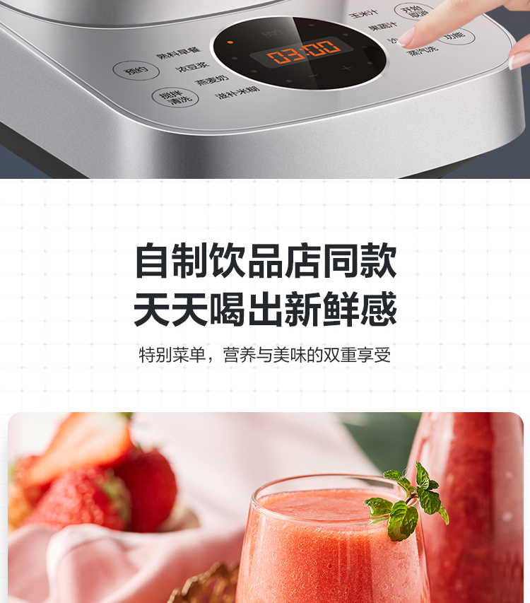 功能:熟料早餐、濃豆?jié){、燕麥奶、滋補米糊、玉米汁、果蔬汁、沙冰、蒸汽洗、預(yù)約、攪拌清洗