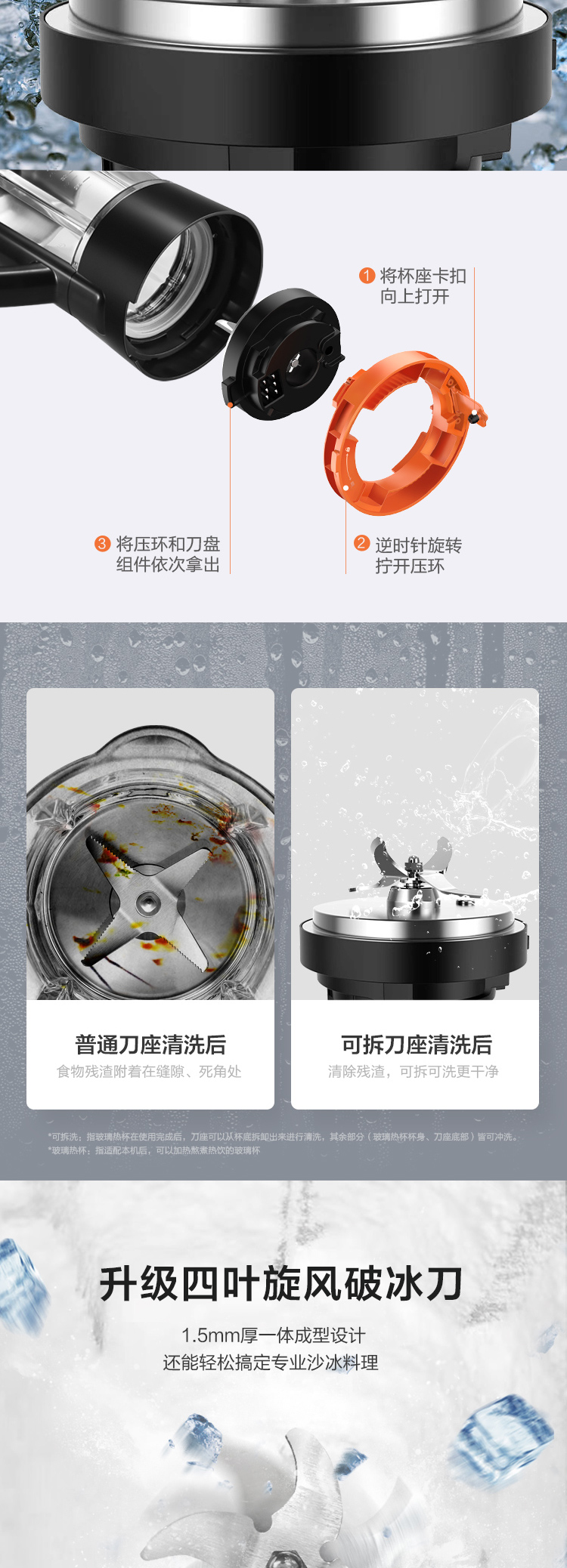 功能:熟料早餐、濃豆?jié){、快豆?jié){、玉米汁、濃湯、綠豆湯、養(yǎng)生煮、沙冰、果汁奶昔、蒸汽清洗、預(yù)約、攪拌清洗、米糊