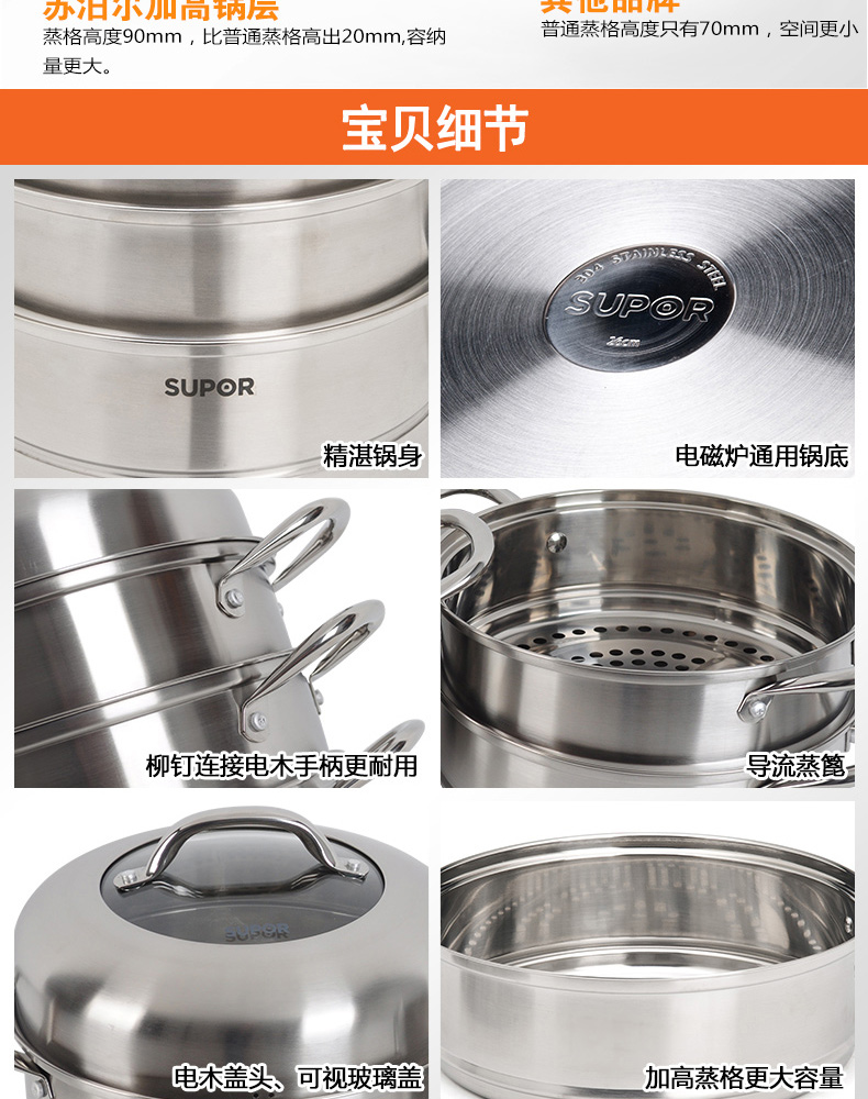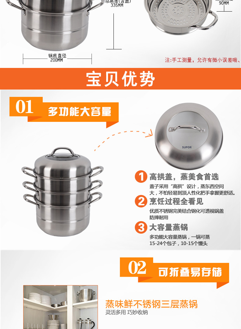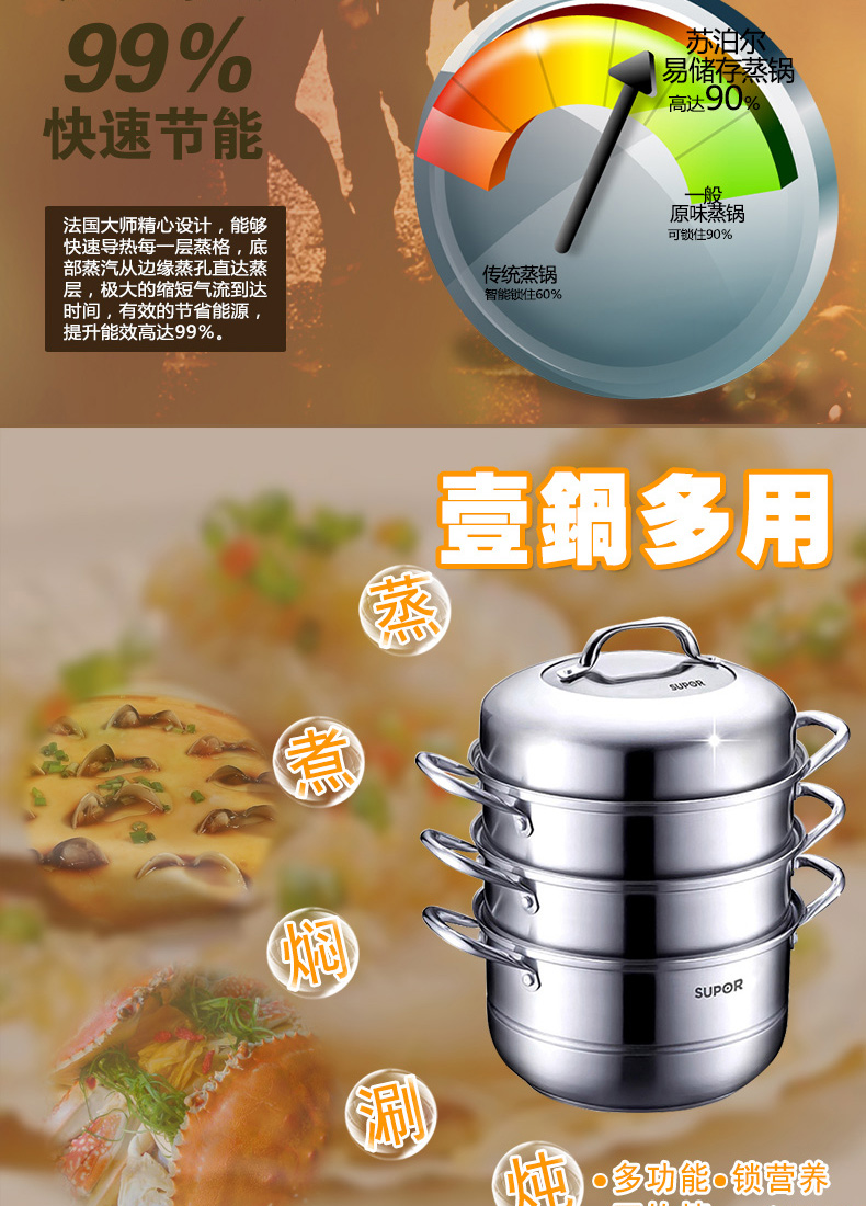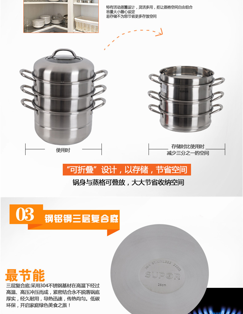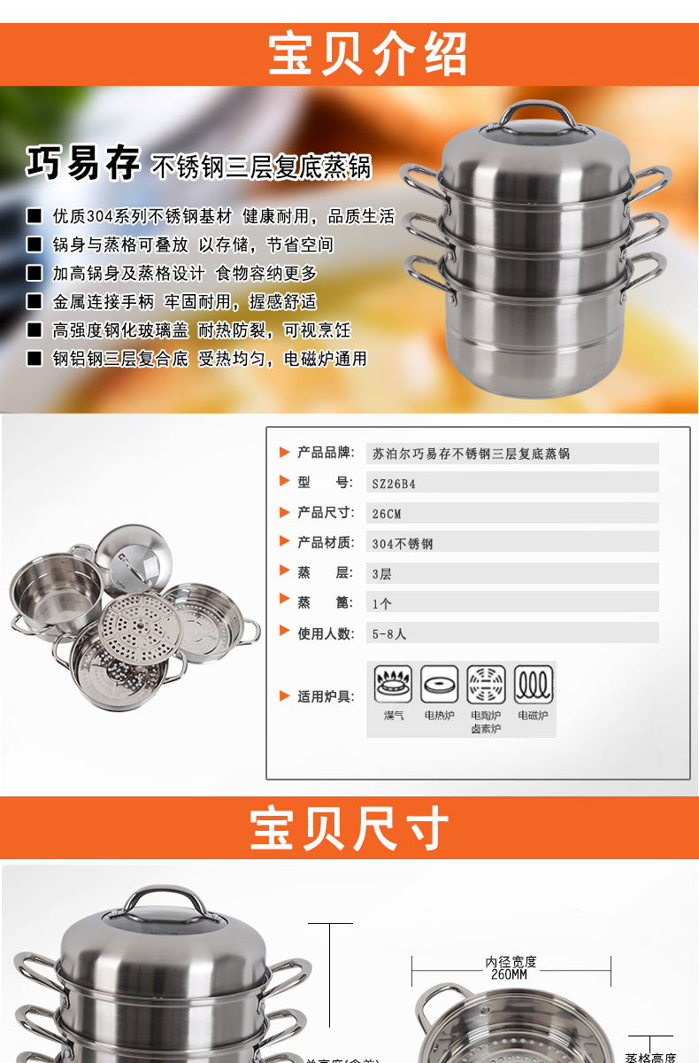 易存儲(chǔ)全鋼三層復(fù)底蒸鍋