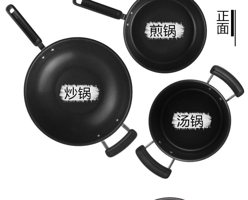 產(chǎn)品組成:炒鍋+湯鍋+煎鍋