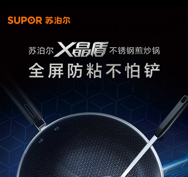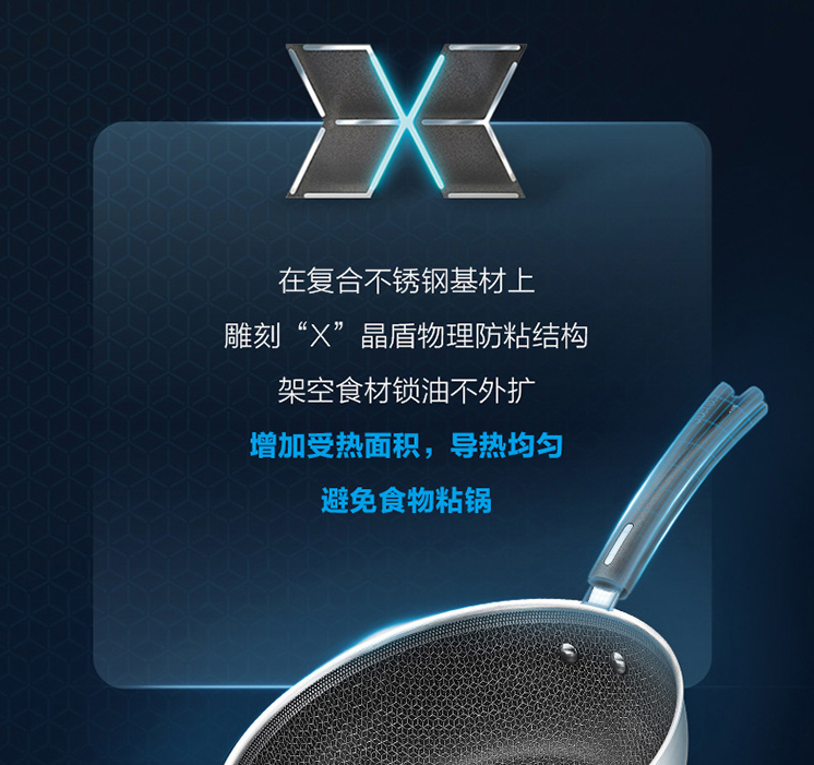 X晶盾不銹鋼煎炒鍋