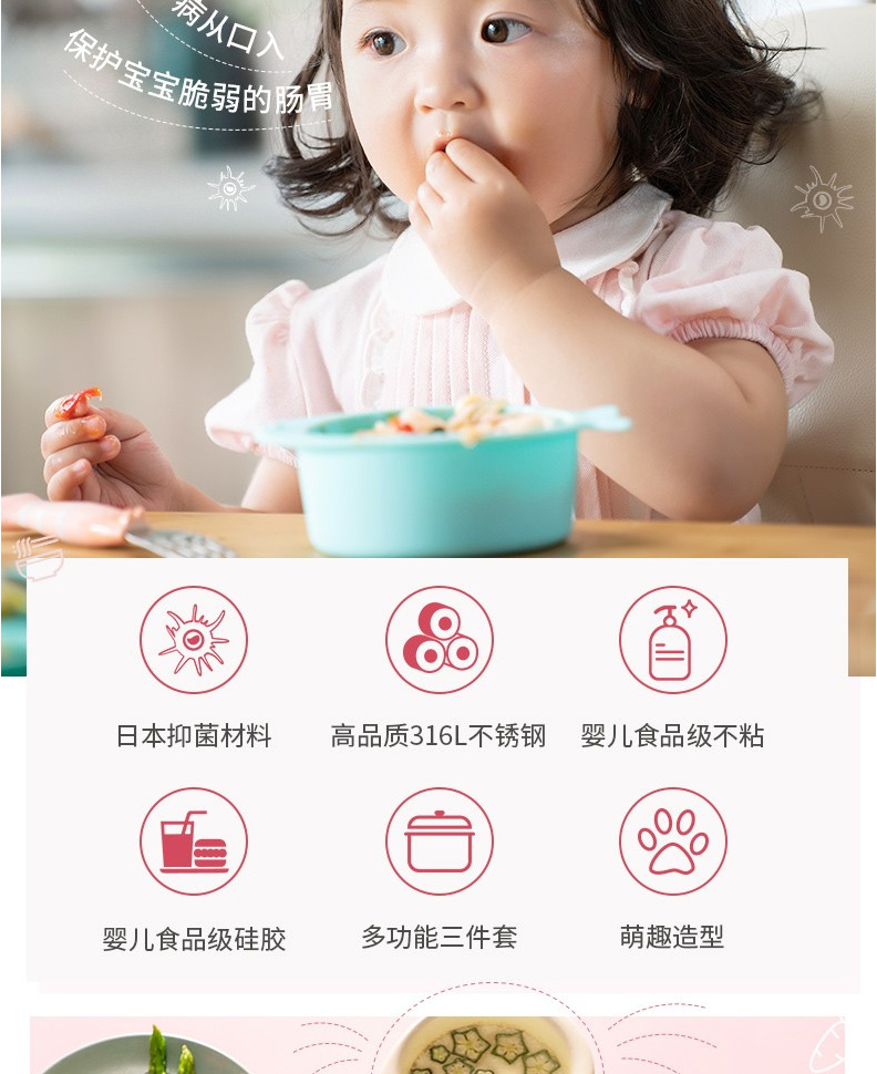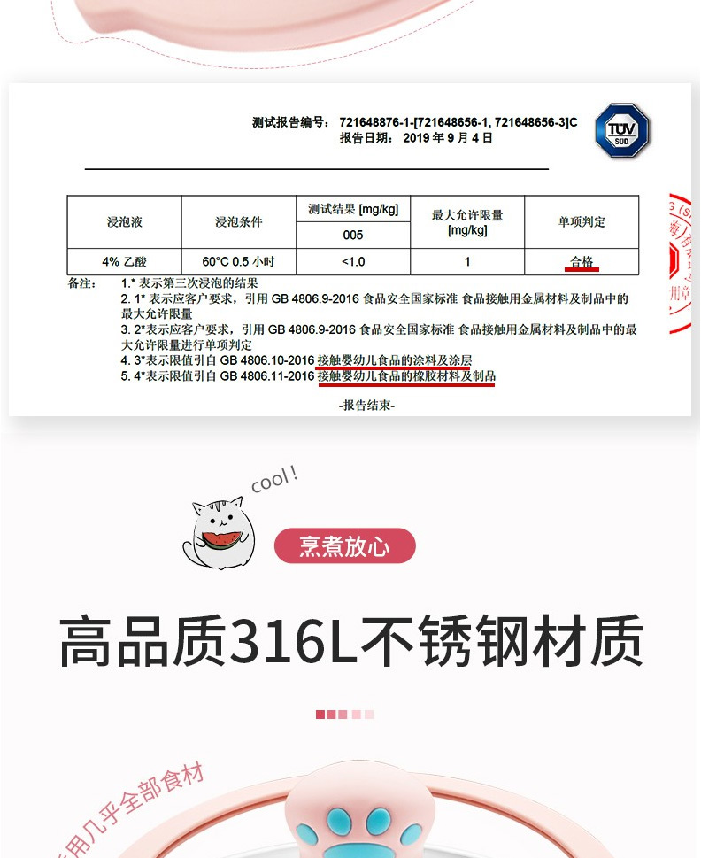 材質(zhì):316L不銹鋼+嬰兒食品級硅膠