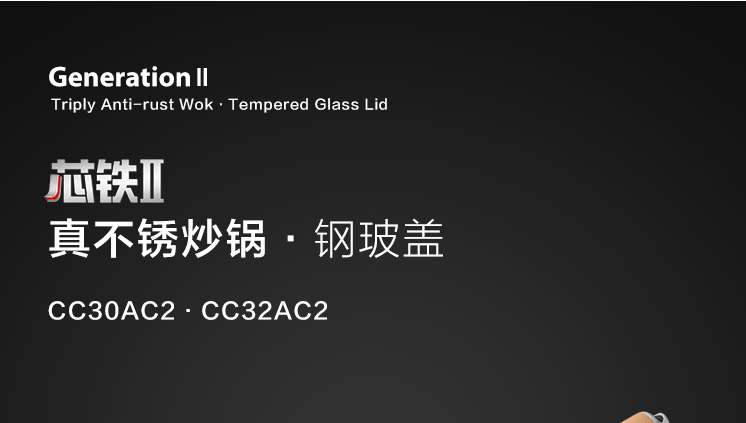 芯鐵II真不銹炒鍋·鋼玻蓋
