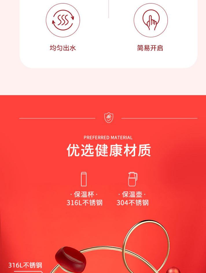 杯身材質(zhì):304不銹鋼(保溫壺)、316L不銹鋼(保溫杯)