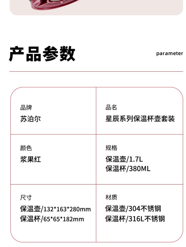 規(guī)格:1.7L保溫壺+380ml保溫杯