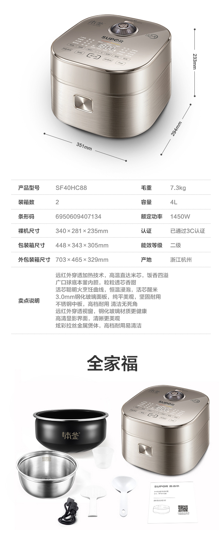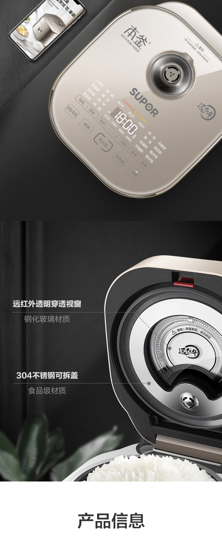 特點(diǎn):遠(yuǎn)紅外加熱、IH、本釜、快煮飯