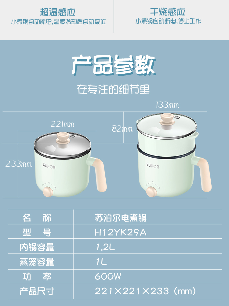 容量:內(nèi)鍋1.2L、蒸籠 1L