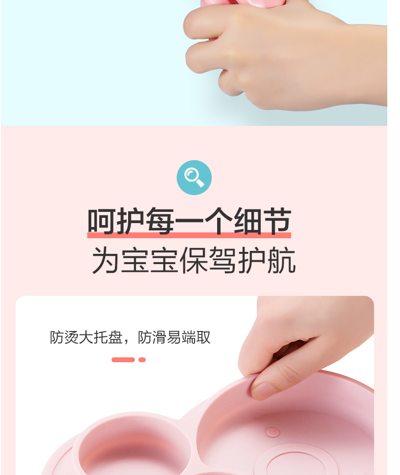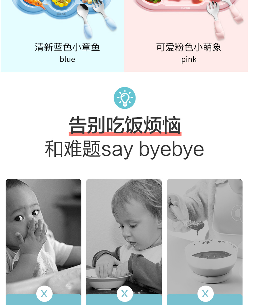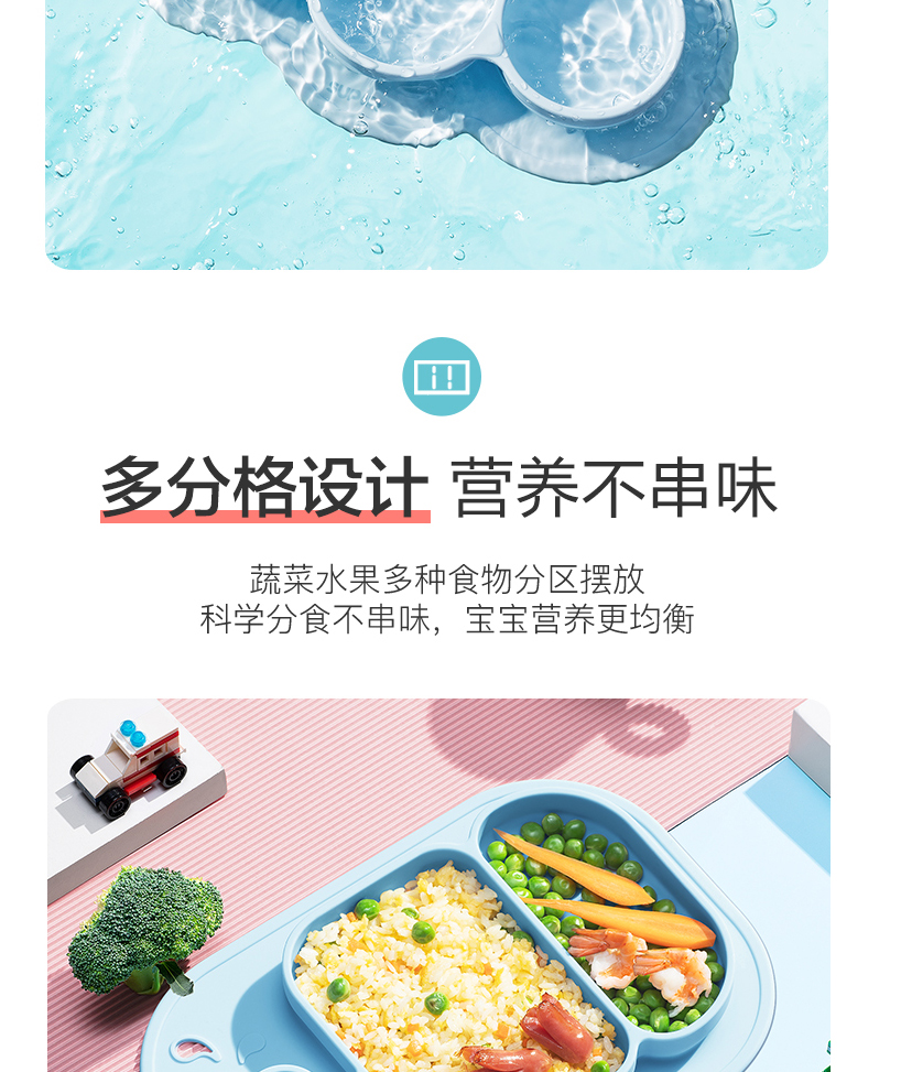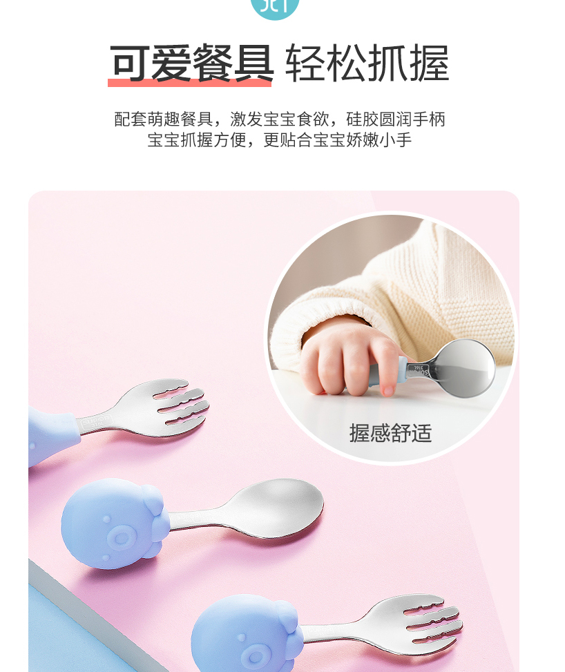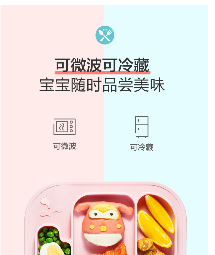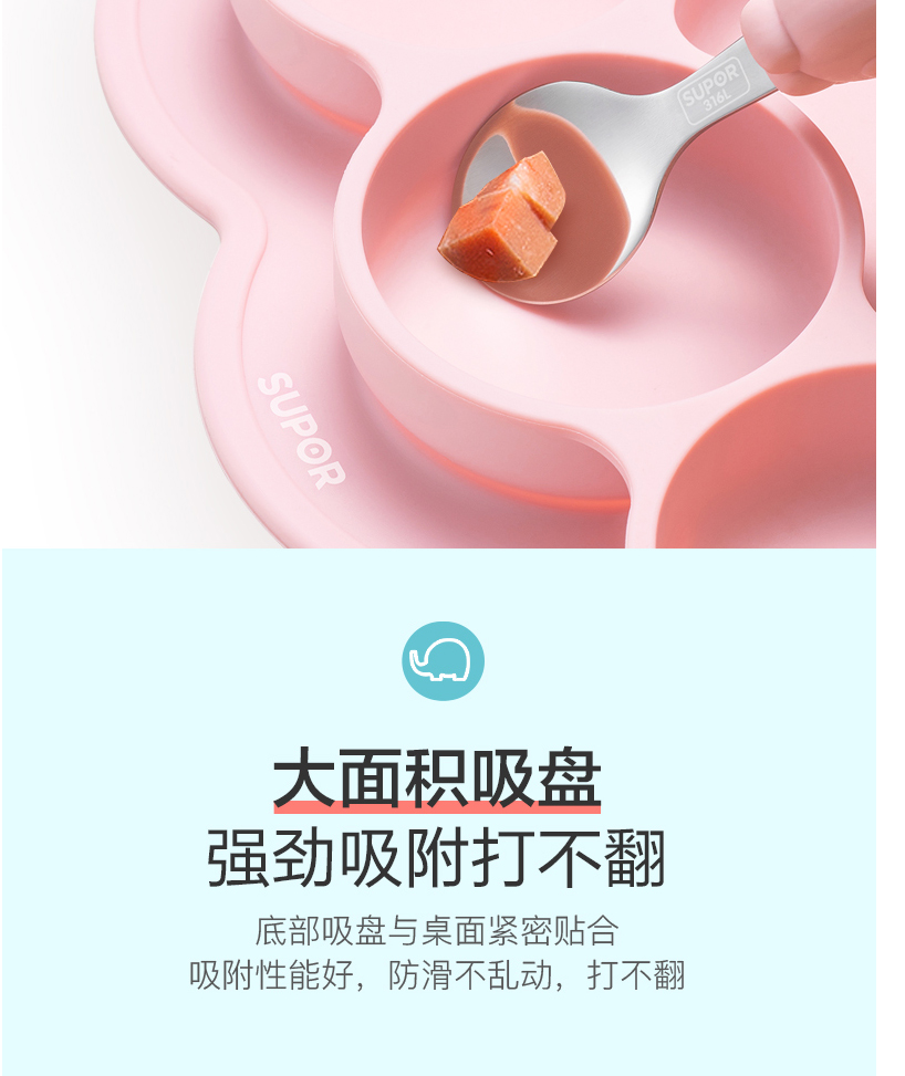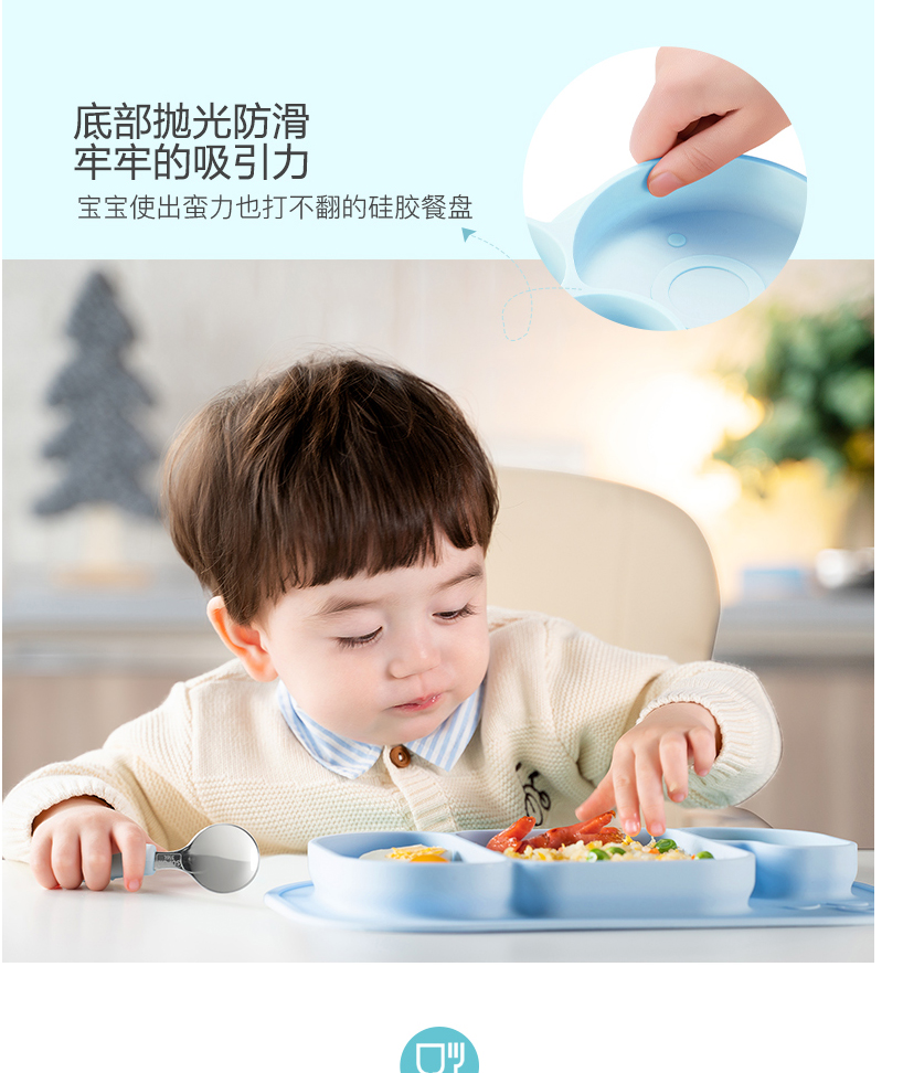 材質(zhì):食品接觸用硅膠(餐盤(pán))、316不銹鋼(叉勺)