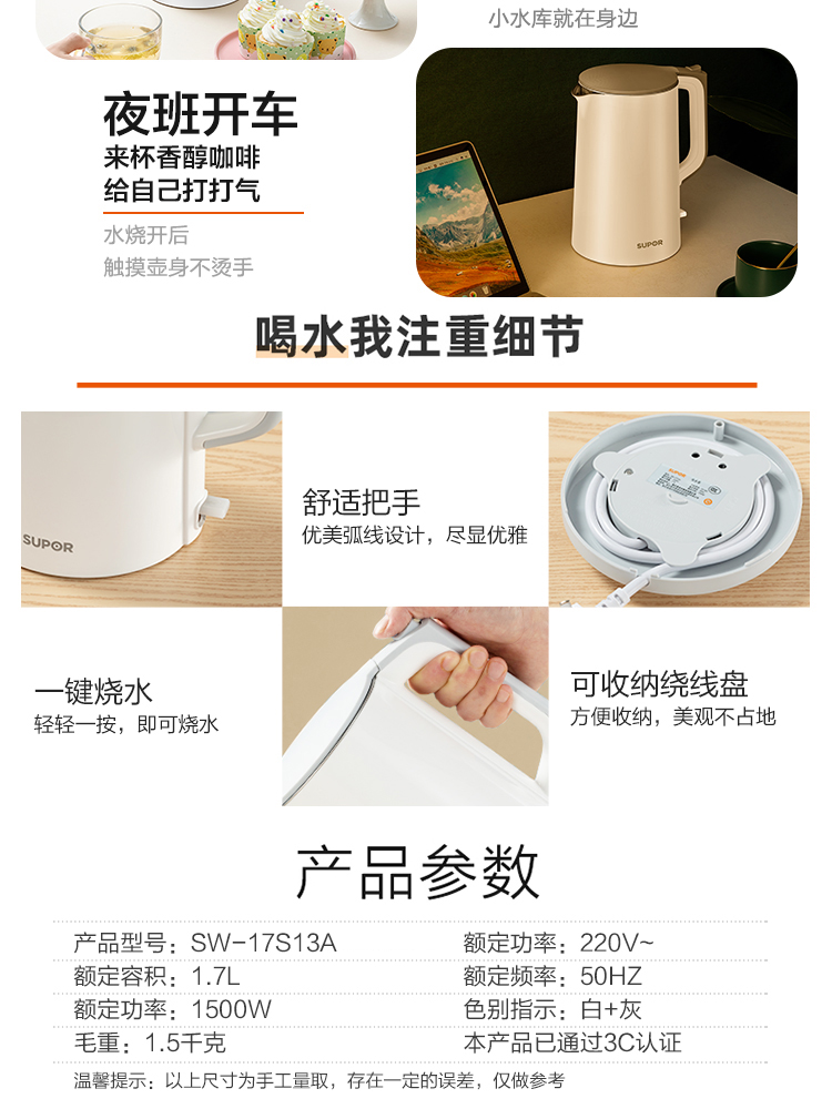 電熱水壺容積: 1.7L