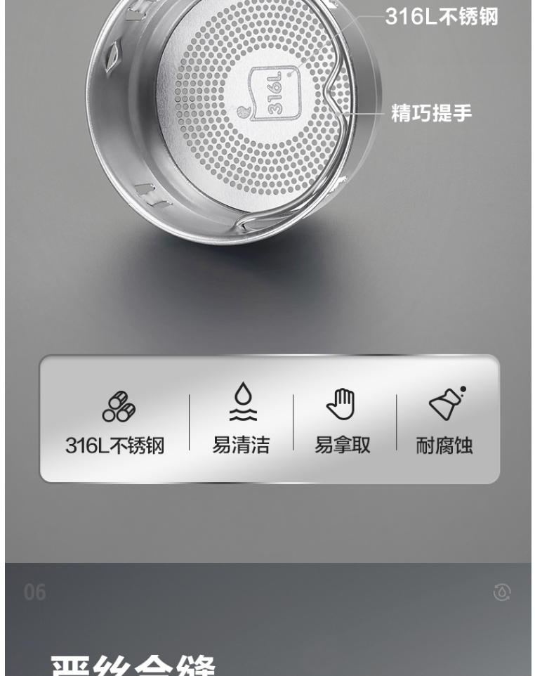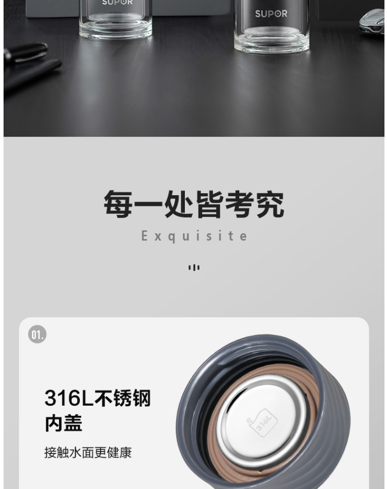 杯蓋材質(zhì):外殼金屬環(huán)、內(nèi)部316L不銹鋼