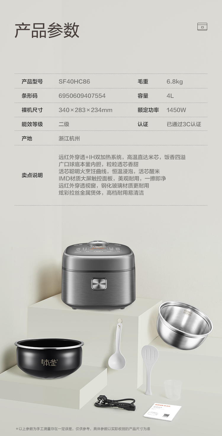 特點(diǎn):遠(yuǎn)紅外加熱、IH、本釜、快煮飯